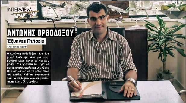 Ο Αντώνης Ορθοδόξου κάνει ένα μικρό διάλειμμα από μία κουραστική μέρα εργασίας και μας μπάζει στο γραφείο του για να μας αποκαλύψει όλα τα μυστικά της Blue Air, καθώς και τα μελλοντικά του σχέδια. Καθίστε αναπαυτικά γιατί το ταξίδι μιας όμορφης συζητήσης έχει μόλις αρχίσει!