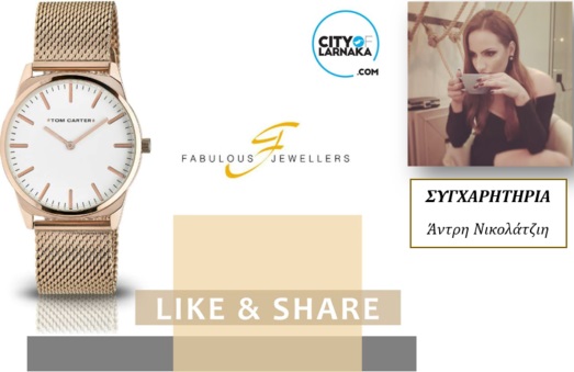 Στο City of Larnaka το κοσμηματοπωλείο Fabulous Jewellers έδωσε την ευκαιρία σε έναν μεγάλο/η τυχερό/ή να κερδίσει ένα ρολόι Tom Carter- Cruise Collection Elegance αξίας €110,00.