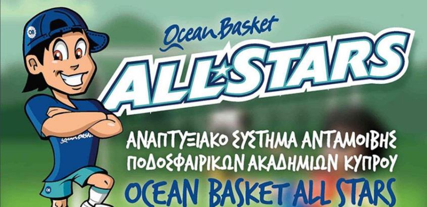 Με ένα νέο πρωτοποριακό πρόγραμμα η εταιρεία Ocean Basket, εδραιώνει την παρουσία της στον αθλητισμό, στηρίζοντας το μέλλον του κυπριακού ποδοσφαίρου, που δεν είναι άλλο από τα μικρά παιδιά. Προχωρά στη δημιουργία ενός Συστήματος Ανάπτυξης και Ανταμοιβής, το Ocean Basket All Stars, για τις ποδοσφαιρικές ακαδημίες και τους ποδοσφαιριστές τους με ηλικία 5-13 χρόνων.