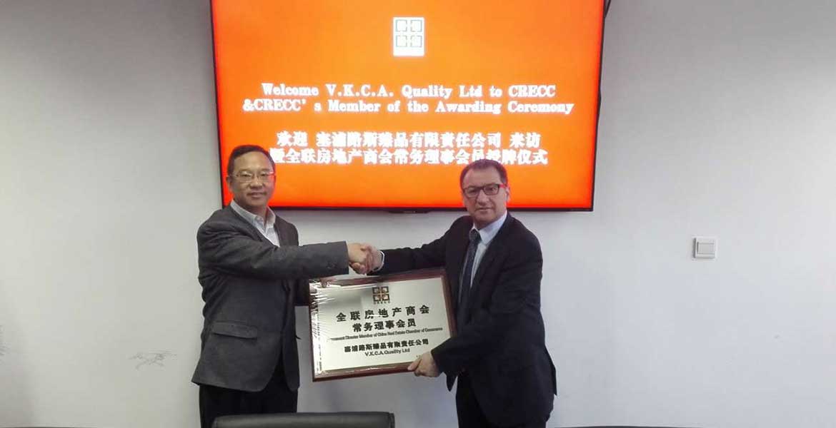 Την περασμένη εβδομάδα πραγματοποιήθηκε τελετή απονομής βραβείων στο Πεκίνο, όπου το Κινέζικο Εμπορικό Επιμελητήριο Ακινήτων καλωσόρισε την Quality Group ως επίσημο μέλος του. Ο Γενικός Γραμματέας του Εμπορικού Επιμελητηρίου, κ Zhong Bin, και Αναπληρωτής Γενικός Γραμματέας, κα Wang Yuqing, παρέδωσαν προσωπικά το βραβείο στον Διευθύνοντα Σύμβουλο της εταιρείας, κ Σάββα Κάκο.