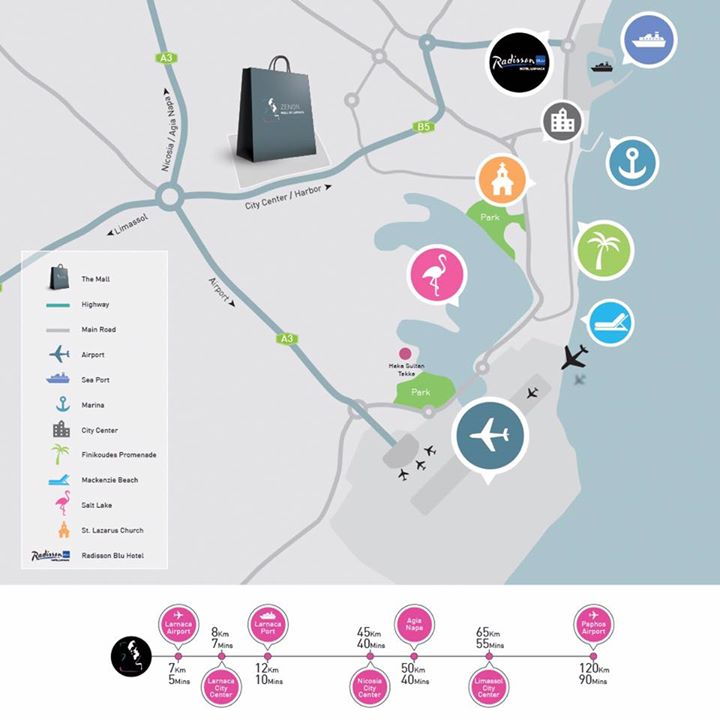 Η τοποθεσία του έχει τη δική της αξία καθώς θα βρίσκεται μόλις 3 λεπτά από το αεροδρόμιο Λάρνακας και σε ένα σημείο όπου αποτελεί διασταύρωση που συνδέει όλες τις βασικές αρτηρίες του οδικού δικτύου της Κύπρου.