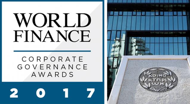 Η Τράπεζα Κύπρου βραβεύτηκε ως η «Καλύτερη Τράπεζα σε θέματα Εταιρικής Διακυβέρνησης για το 2017» στην Κύπρο, από το εξειδικευμένο διεθνές περιοδικό World Finance.