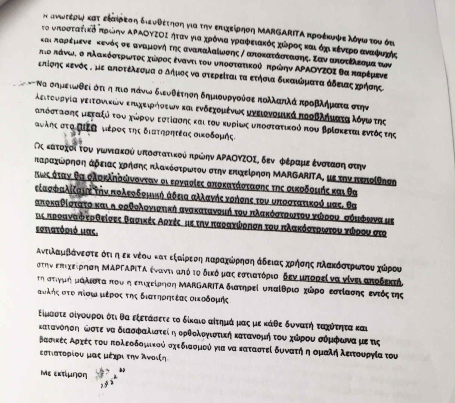 Όσο αναφορά την περίπτωση του ‘Margarita’ αναμφίβολα αποτελεί ένα χώρο τον οποίο αγαπήσαμε όλοι εδώ και χρόνια και εμείς ως σελίδα πάντα στηρίζαμε με τα άρθρα μας την εν λόγω επιχείρηση. Από τη στιγμή όμως που ξεκίνησαν οι εργασίες αναστήλωσης του κτιρίου ήταν λογικό πως αυτή η στιγμή θα ερχόταν και όφειλαν οι ιδιοκτήτες του ‘Margarita’ σε συνεννόηση με το Δήμο να εξασφαλίσουν χώρο σε μια άλλη περιοχή χωρίς να προκαλούν προβλήματα σε άλλα υποστατικά και επιχειρήσεις..