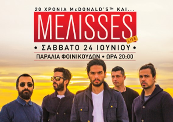 Στα πλαίσια των εορτασμών των 20 χρόνων λειτουργίας, τα McDonald’s φέρνουν κοντά μας το αγαπημένο σε όλους , συγκρότημα «Μέλισσες» για μία μοναδική συναυλία στην παραλία των Φοινικούδων.