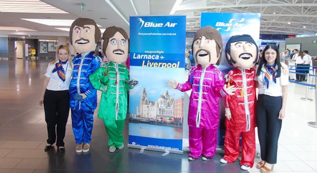 Η Blue Air μεγαλώνει, ανοίγει φτερά και σας πάει στο Λίβερπουλ. Η Smart flying αερογραμμή γιόρτασε τη νέα της προσθήκη στα δρομολόγια της από την Λάρνακα και εκτέλεσε την πρώτη της πτήση την Τρίτη (27 Ιουνίου), με τους «Beatles» στο προσκήνιο. Οι ηθοποιοί, ντυμένοι ως το διάσημο ροκ συγκρότημα κατά τη διάρκεια του check in της πτήσης, μοίραζαν φυλλάδια, καραμέλες, καθώς και αγκαλιές και φωτογραφίες με τους επιβάτες, στο Διεθνή Αερολιμένα της Λάρνακας «Γλαύκος Κληρίδης» με την απρόβλεπτη αυτή ενέργεια!