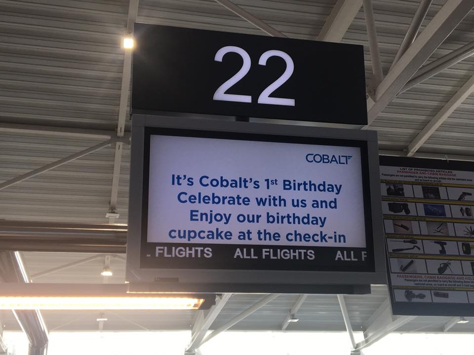 Η Cobalt, η αεροπορική εταιρεία της Κύπρου γιορτάζει τα πρώτα της γενέθλια στις 7 Ιουλίου. Στα πλαίσια των πρώτω γενεθλίων της η εταιρεία πρόσφερε σε όλους τους επιβάτες της cup cakes όπου αναγραφόταν ο αριθμός 1.