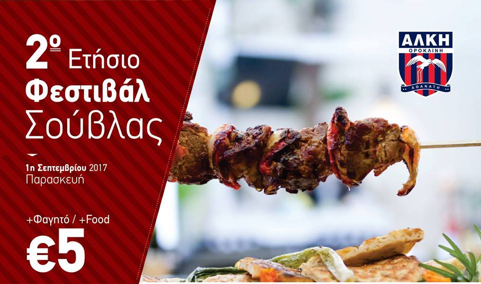 Η Αλκή Ορόκλινη διοργανώνει το 2ο Ετήσιο Φεστιβάλ Σούβλας, την Παρασκευή 1η Σεπτεμβρίου 2017, η ώρα 8:00μμ, στο χώρο εκδηλώσεων Ορόκλινης, έναντι από την Παλαιά Εκκλησία Αρχαγγέλου Μιχαήλ.