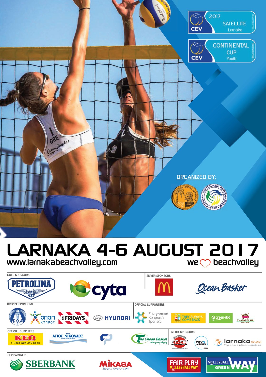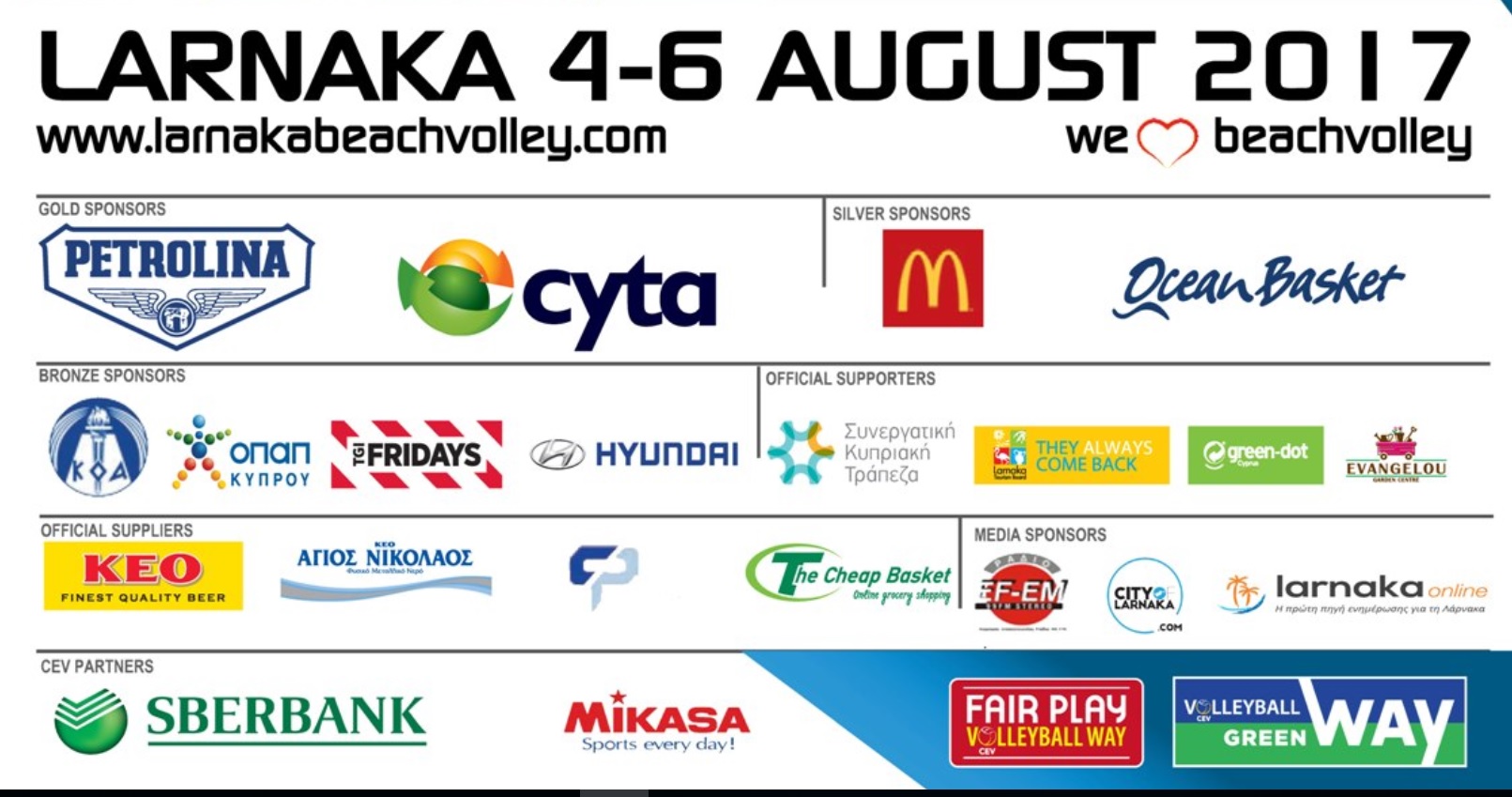 Χρυσοί χορηγοί του Παγκόσμιου Πρωταθλήματος  Beach Volley Satelite 2017 είναι η PETROLINA (Holdings) PUBLIC LTD και η  CYTA