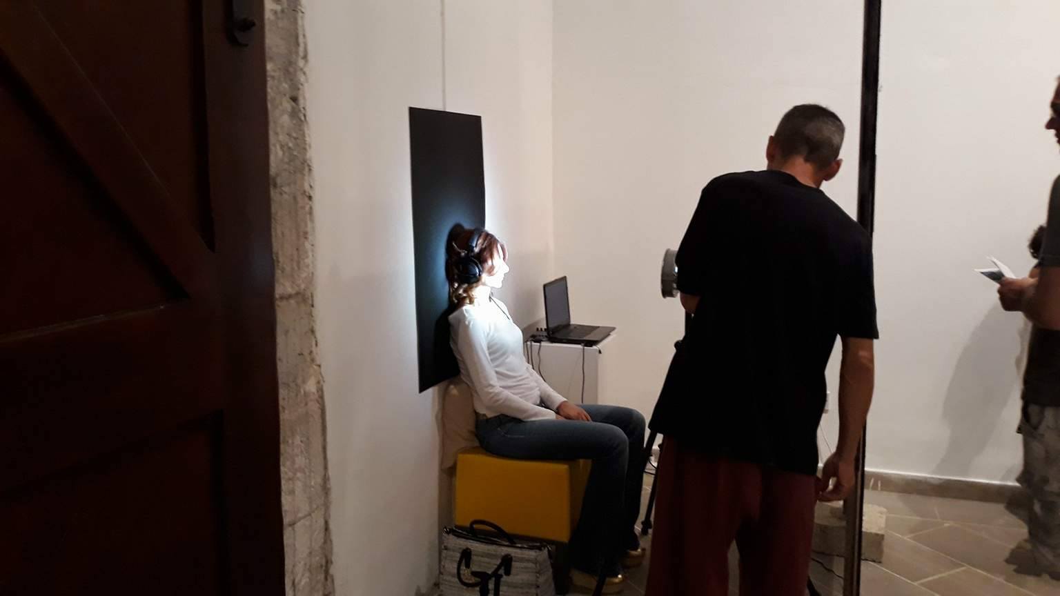 Η Δόμνα Μοϋσέως μια από τους καλλιτέχνες της βραδιάς μας ανέφερε ότι το δικό τους έργο αποτελείται από ένα συνδυασμό της οπτικής εικόνας με τον ήχο και την κινούμενη εικόνα.