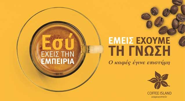 Συγκεκριμένα η Coffee Island μας καλεί σε ένα από τα καταστήματά της με σκοπό να εξερευνήσουμε τα καφεκοπτεία της, χαρίζοντάς μας μάλιστα το 15% της αξίας των καφέδων που θα επιλέξουμε.
