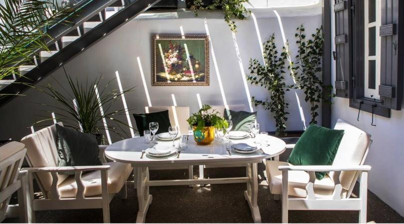 Αυτή η μυστική, καταπράσινη αυλή φαίνεται πως σύντομα θα γίνει talk of town αφού είναι ιδανική για δροσερά πρωινά και απογεύματα για χαλάρωση στις άνετες ξύλινες πολυθρόνες.