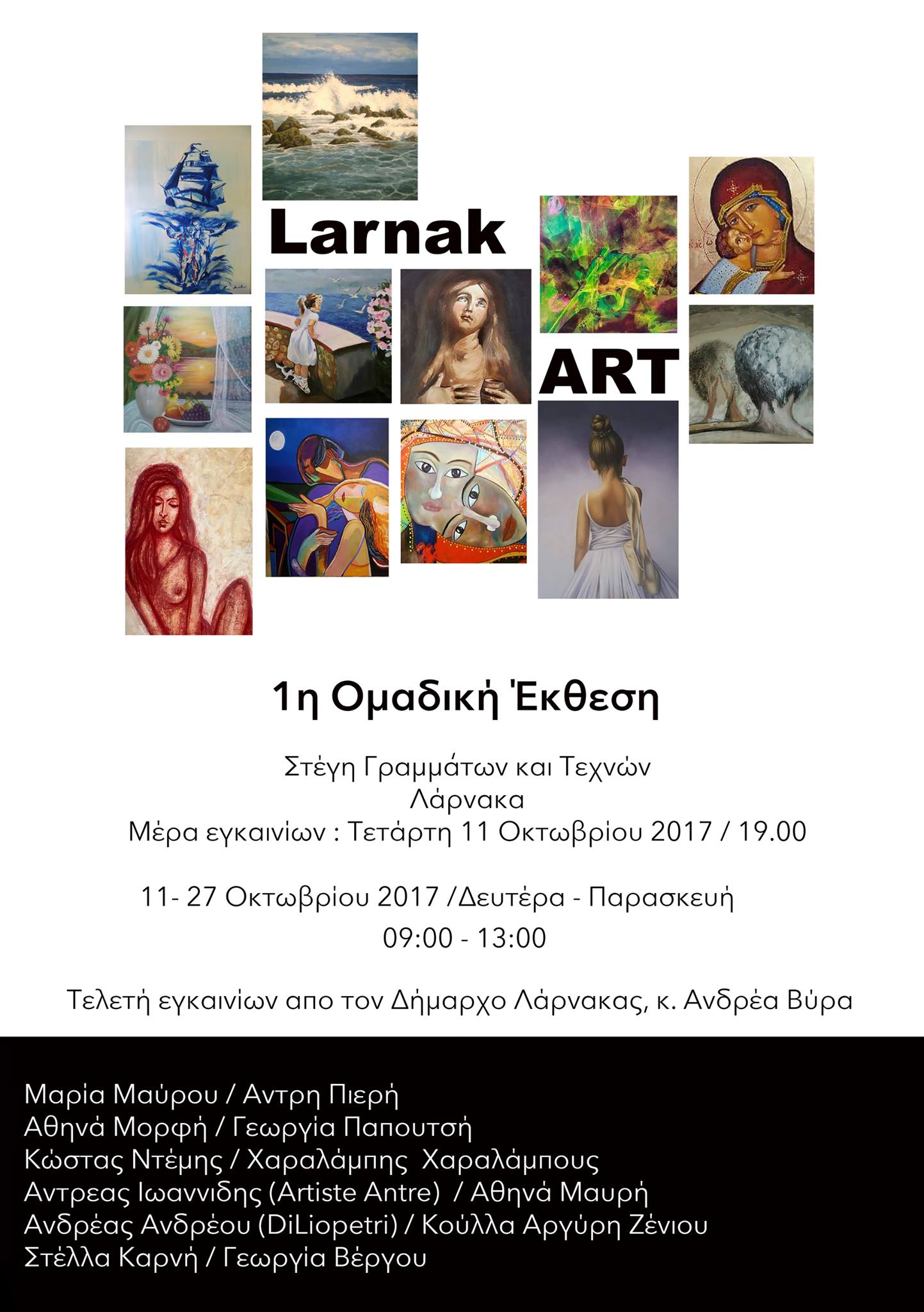 ΕκθέσειςΚαλλιτέχνες Σήμερα τα εγκαίνια της έκθεσης «Larnak Art» Τελευταία ενημέρωση: 17 Μαΐου, 2025 1:53 μμ Από Alexandros Elia 0 Λεπτά Ανάγνωσης Κοινοποίηση ΚΟΙΝΟΠΟΙΗΣΗ Advertisements Την πρώτη ομαδική έκθεση εγκαινιάζουν στις 11 Οκτωβρίου 7μμ στη Στέγη Γραμμάτων και Τεχνών 10 νέοι πολλά υποσχόμενοι ζωγράφοι. Τα εγκαίνια θα τελέσει ο Δήμαρχος Λάρνακας Ανδρέας Βύρας. Η έκθεση τιτλοφορείται με το όνομα «Larnak Art». estset test Κοινοποιήστε αυτό το άρθρο Facebook Email Copy Link Print Το Κέντρο Σύγχρονης Τέχνης ΔΙΑΤΟΠΟΣ παρουσιάζει τη νέα εικαστική πρόταση της Κατερίνας Σταύρου με τίτλο “Beyond Stereotypical Identities” Εκδήλωση Λυσιώτη καλλιτέχνη Πραγματοποιήθηκαν τα εγκαίνια της «Μπιενάλε Λάρνακας 2018» «Diversity: A State of Mind» – Μια έκθεση στην Πλατεία Ευρώπης που αξίζει να δείτε Μια θεματική έκθεση έρχεται στην Καλαβασό