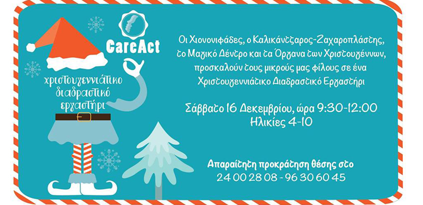 Ημερομηνίες: 16/12/2017 09:30 am – 16/12/2017 12:00 pm    Τοποθεσία CareAct – Εκπαιδευτικό & Θεραπευτικό Κέντρο Edessis
