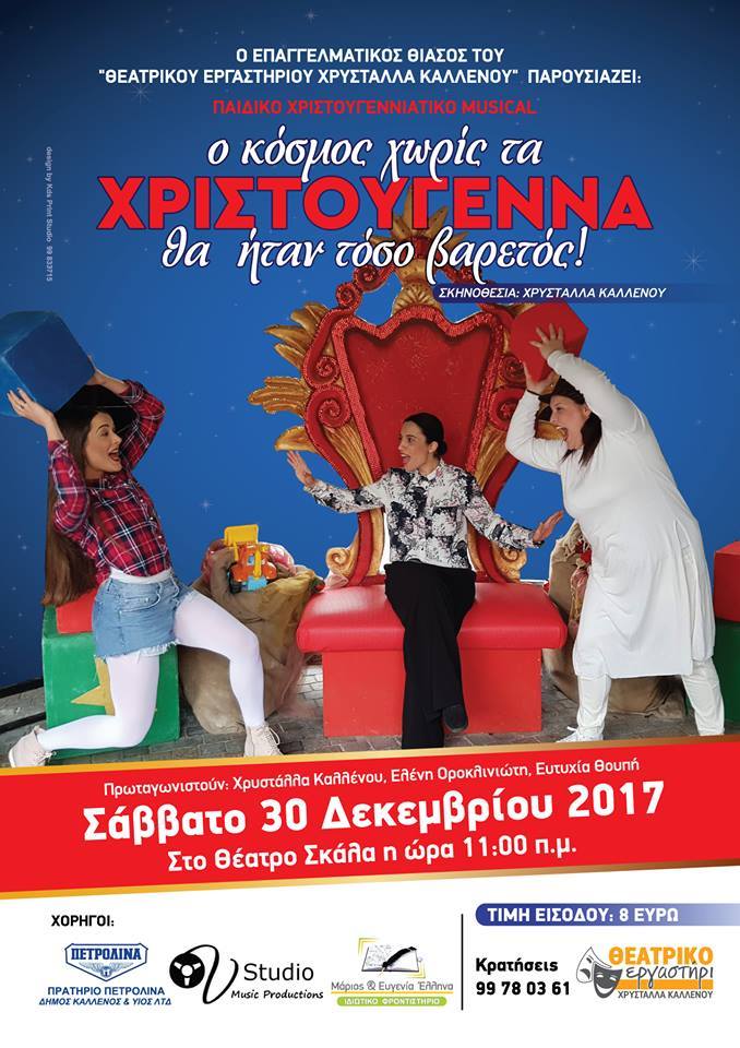 Ο Επαγγελματικός Θίασος του «Θεατρικού Εργαστηρίου Χρυστάλλα Καλλένου», παρουσιάζει τo Χριστουγεννιάτικο Παιδικό Musical…