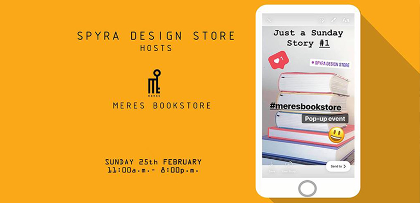 Το Spyra Design Store σε συνεργασία με το MERES bookstore διοργανώνουν από κοινού, το pop up event “Just a Sunday Story #1”. Το event θα πραγματοποιηθεί στο χώρο του Spyra Design Store στην οδό Σταδίου 56 στη Λάρνακα, στις 25 Φεβρουαρίου 2018 από τις 11.00 π.μ. μέχρι τις 8.00 μ.μ.