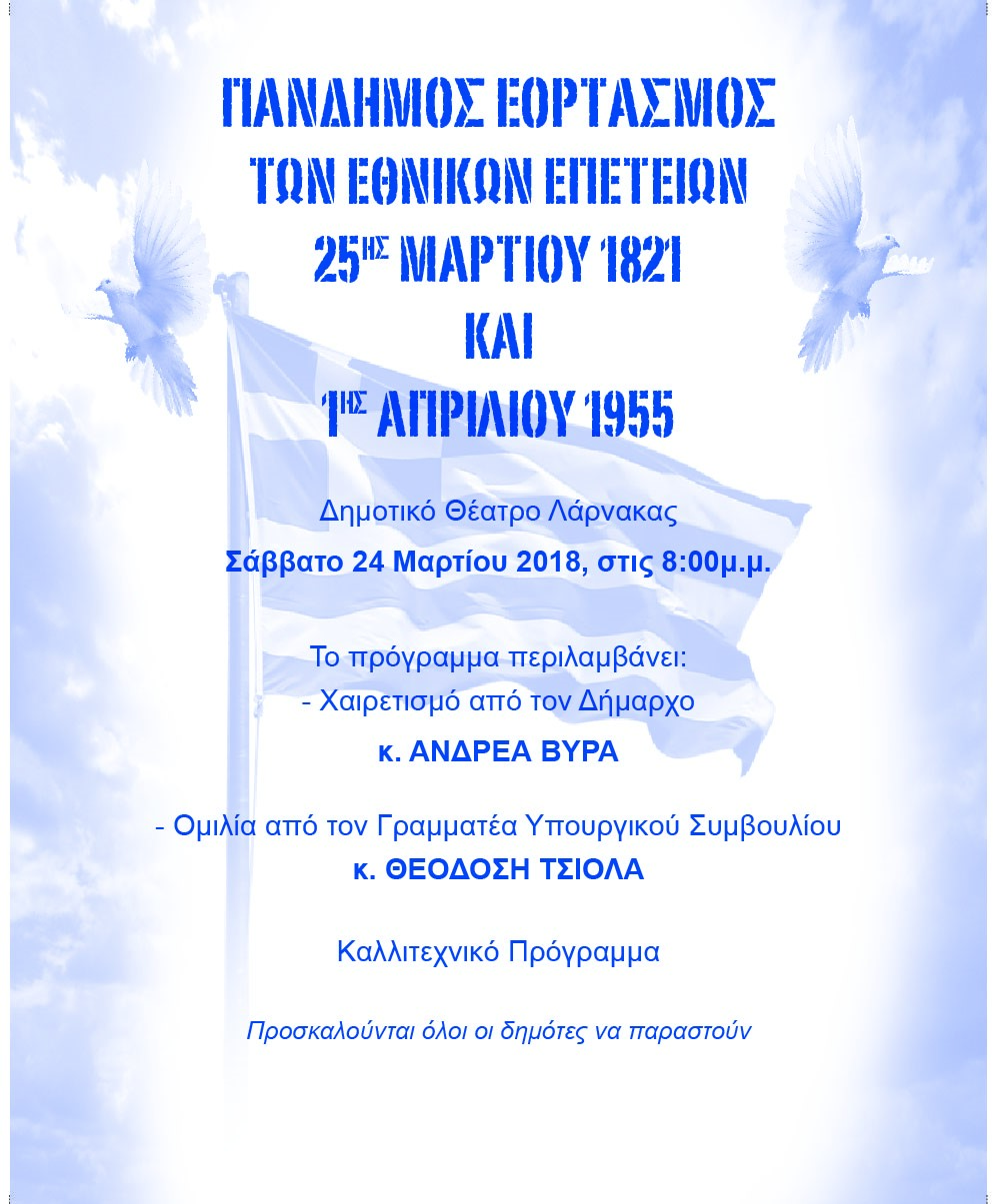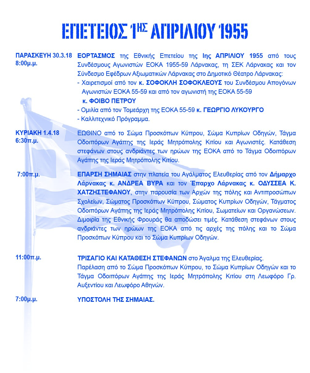 Γενικά Αυτό είναι το πρόγραμμα των Εορτασμών της 25ης Μαρτίου και της 1ης Απριλίου Τελευταία ενημέρωση: 17 Μαΐου, 2025 2:14 μμ Από Alexandros Elia 0 Λεπτά Ανάγνωσης Κοινοποίηση ΚΟΙΝΟΠΟΙΗΣΗ Advertisements Αυτό είναι το πρόγραμμα των Εορτασμών της 25ηςΜαρτίου και της 1ης Απριλίου. estset test Κοινοποιήστε αυτό το άρθρο Facebook Email Copy Link Print Cyprus Airways: Ένας χρόνος πτήσεων Αθήνα – Λάρνακα Χαραλαμπίδης Κρίστης: Στραγγάτο Fruta Cherry Mix IDEA SEVEN: Γιατί ο κόσμος μας χρειάζεται τα μουστάκια Αρχίζει η χορήγηση υλικών στους στρατεύσιμους της 2020 ΕΣΣΟ- Δείτε τα σημεία Eφτασε στην Λάρνακα η πτήση από Birmingham, μεταφέροντας 116 άτομα