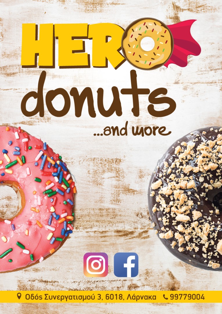 Το πρώτο μαγαζί με donuts ανοίγει στη καρδιά της Λάρνακας την Δευτέρα 1η Οκτωβρίου χαροποιώντας ιδιαίτερα τους λάτρεις των γλυκών, ειδικά των Donuts. Το Hero Donuts and More είναι το πρώτο μαγαζί της επαρχίας Λάρνακας που φτιάχνει και διαθέτει αποκλειστικά αυτό το είδος γλυκού το οποίο τα τελευταία χρόνια κερδίζει έδαφος και στην Κύπρο.