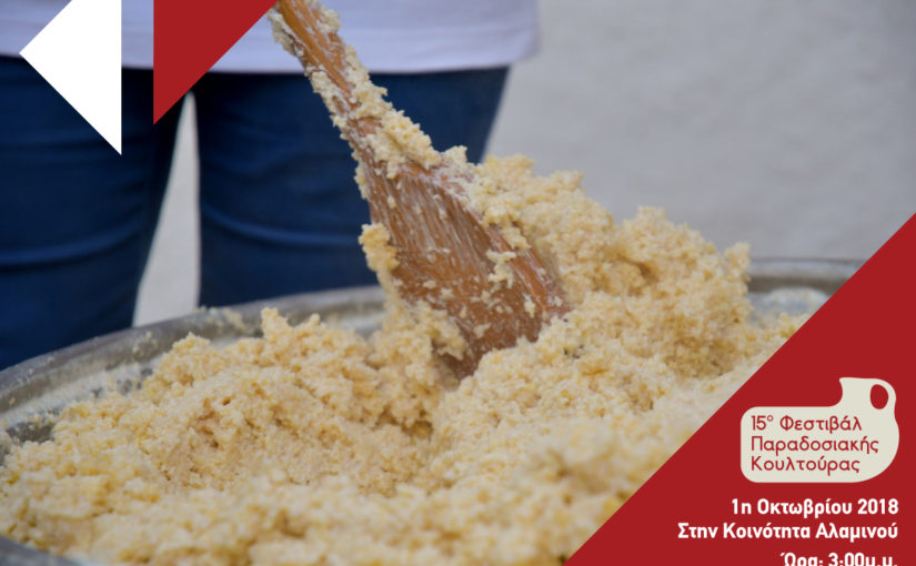 Ο Σύλλογος Γυναικών Υπαίθρου Λάρνακας διοργανώνει το ετήσιο Φεστιβάλ Παραδοσιακής Κουλτούρας για 15η συνεχή χρονιά. Η φετινή διοργάνωση γίνεται σε συνεργασία με το  Κοινοτικό Συμβούλιο Αλαμινού . Το Φεστιβάλ θα πραγματοποιηθεί την 1η Οκτωβρίου 2018 από τις 3:00μ.μ – 9:00μ.μ. Η όλη εκδήλωση τελεί υπό την αιγίδα του Υπουργού Εσωτερικών κ. Κωνσταντίνου Πετρίδη.