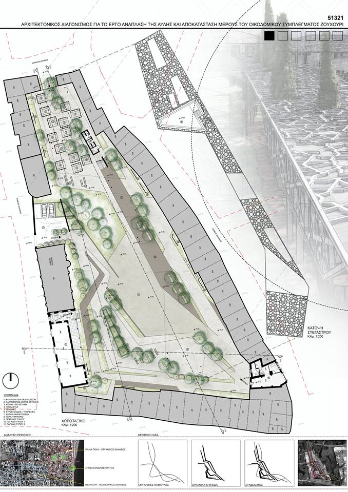 Θα υπάρχουν τρεις είσοδοι για πεζούς ανατολικά, βόρεια και δυτικά της υφιστάμενης εισόδου του τεμένους. Ο ξενώνας θα διατηρήσει τη χρήση του κυρίως για νέους καλλιτέχνες. Αμέσως μετά την κατεδάφιση θα μπορούν να εκπονηθούν τα τελικά κατασκευαστικά σχέδια του Έργου.