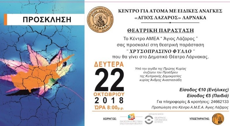 Θέατρο Θεατρική παράσταση «Χρυσοπράσινο Φύλλο» Τελευταία ενημέρωση: 18 Οκτωβρίου, 2018 12:00 πμ Από Alexandros Elia 0 Λεπτά Ανάγνωσης Κοινοποίηση ΚΟΙΝΟΠΟΙΗΣΗ Advertisements Το Κέντρο ΑΜΕΑ Άγιος Λάζαρος, διοργανώνει τη θεατρική παράσταση «Χρυσοπράσινο Φύλλο», τη Δευτέρα 22/10/2018, στις 8.00 μ.μ. στο Δημοτικό Θέατρο Λάρνακας. estset test Κοινοποιήστε αυτό το άρθρο Facebook Email Copy Link Print «ΕΓΚΛΗΜΑ ΚΑΙ ΤΙΜΩΡΙΑ»: Έρχεται στο Δημοτικό Θέατρο Λάρνακας «Αλέξης Ζορμπάς» με τον Γρηγόρη Βαλτινό έρχεται στη Λάρνακα Αυτοί είναι οι επόμενοι σταθμοί της περιοδείας της παράστασης “Ντα” – Δείτε πότε θα βρίσκεται στη Λάρνακα «Μαύρη Κωμωδία»: Συνεχίζονται οι Παραστάσεις στο Θέατρο «ΣΚΑΛΑ» Το ποιητικό έργο: «Αγάπη Νικητής» του Παύλου Λιασίδη από το Θέατρο Σκάλα