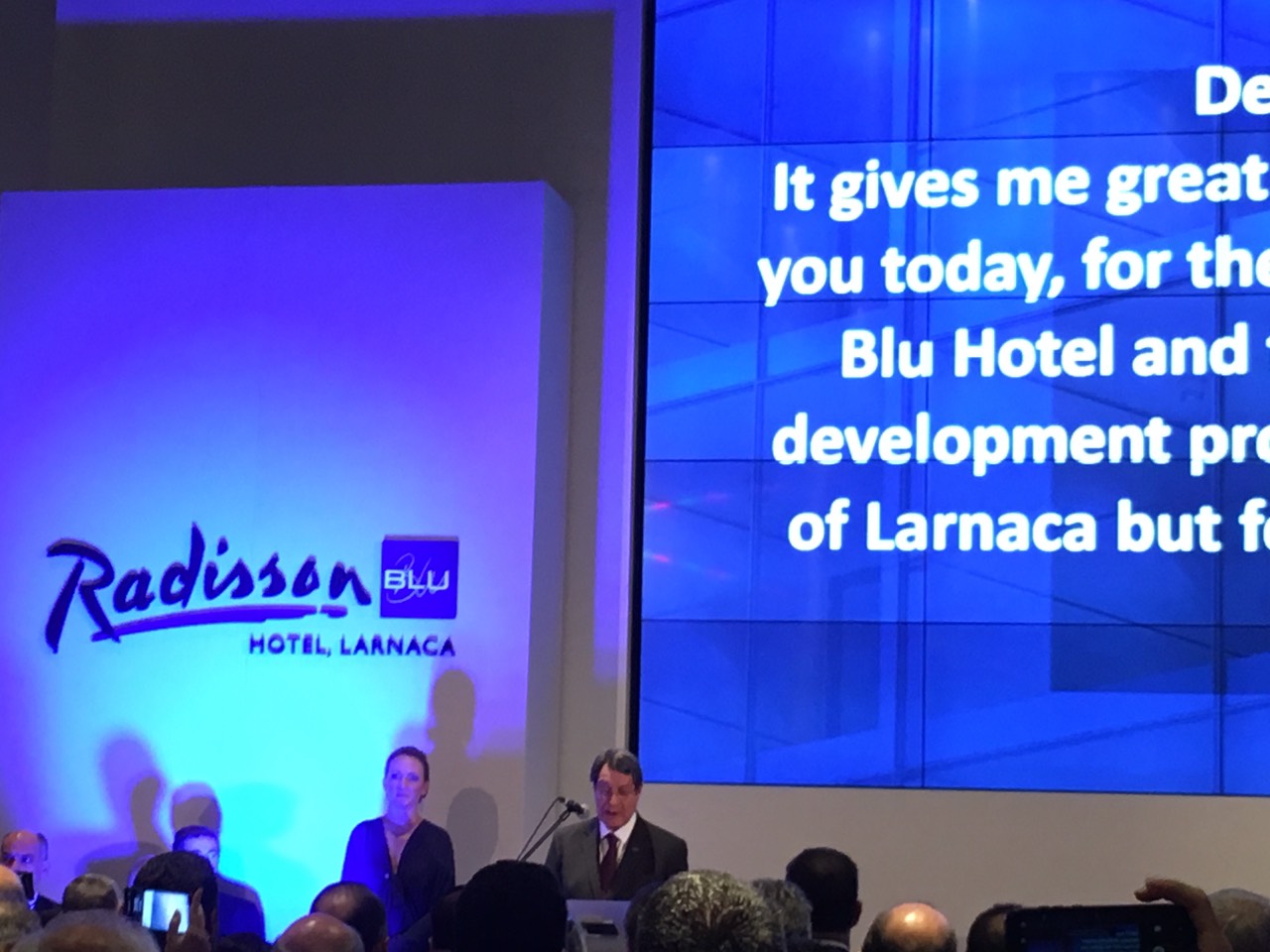 Σε χαιρετισμό του το βράδυ της Τετάρτης στα εγκαίνια του ξενοδοχείου Radisson Blu Hotel και του Εμπορικού του Κέντρου Q- Βlu Plazza, τα οποία χαρακτήρισε «ένα μεγαλεπήβολο αναπτυξιακό έργο» για τη Λάρνακα αλλά και την Κύπρο, ο Πρόεδρος είπε πως «ενώνοντας τις δυνάμεις τους η Quality Group, κορυφαία εταιρεία στην Κύπρο στον τομέα των επενδύσεων και της ανάπτυξης γης και η Radisson Blu Hotel Group, μία από τις μεγαλύτερες εταιρείες ξενοδοχείων στον κόσμο, αυστηρά προσηλωμένες στην αρτιότητα και στον επαγγελματισμό που τις διακρίνει, παρέδωσαν μία ξενοδοχειακή μονάδα ορόσημο για την Λάρνακα».