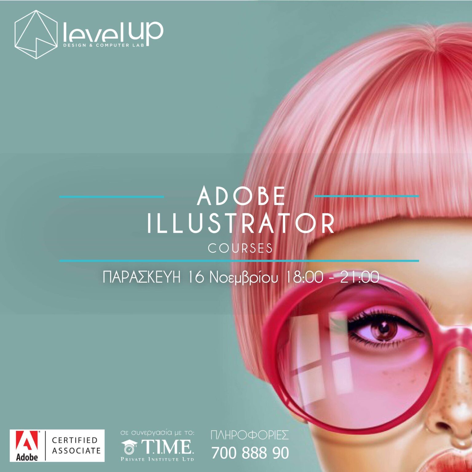 Αυτή την Παρασκευή 16 Νοεμβρίου η ώρα 18:00-21:00 το Level Up Design & Computer Lab., σε συνεργασία με το T.I.M.E Private Institute ξεκινάει νέα μαθήματα Adobe Illustrator στις εγκαταστάσεις τους στην Αραδίππου.