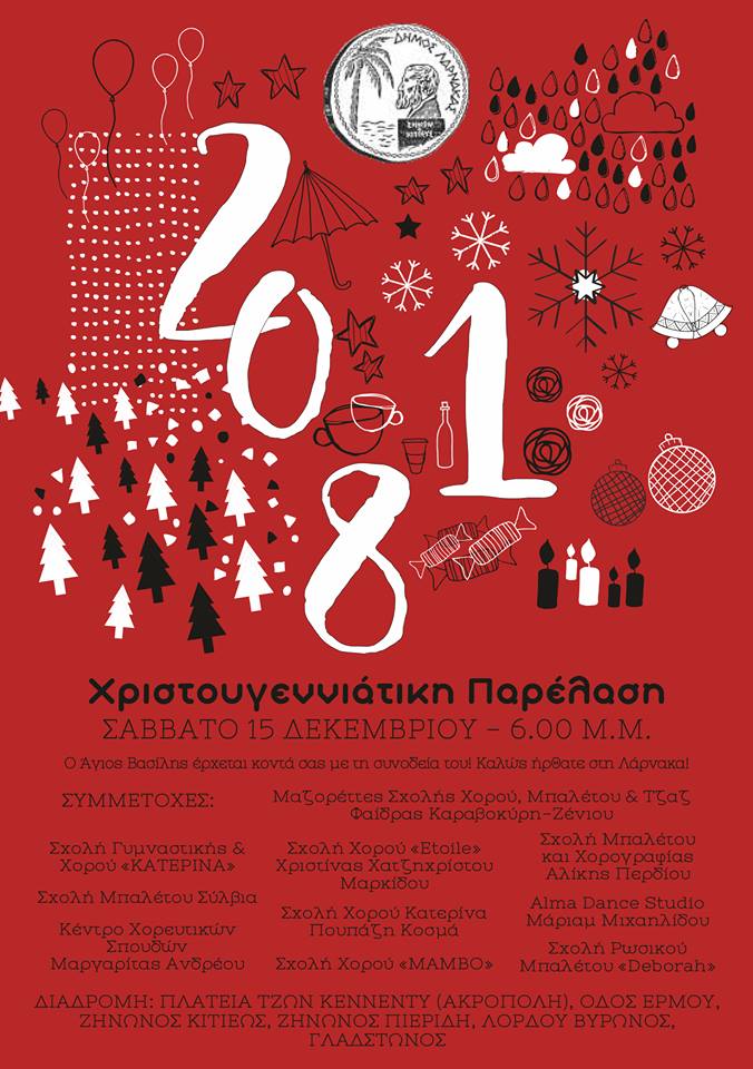 Ο Δήμος Λάρνακας διοργανώνει και φέτος  Χριστουγεννιάτικη Παρέλαση το Σάββατο 15 Δεκεμβρίου στις 18:00 στο εμπορικό κέντρο της πόλης.
