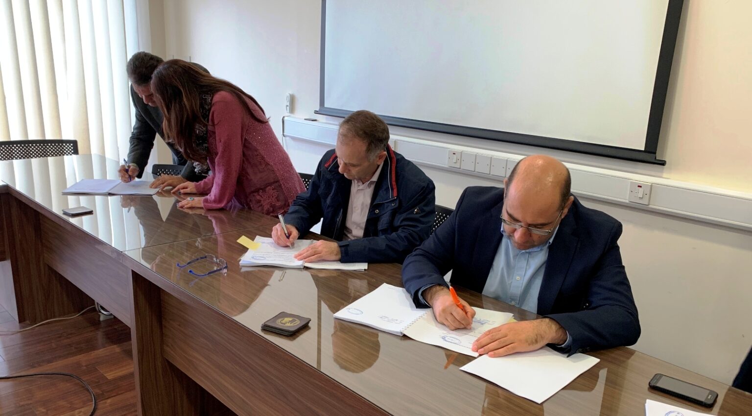 Πραγματοποιήθηκε σήμερα, Πέμπτη 6 Δεκεμβρίου 2018,  στα Κεντρικά Γραφεία του Δήμου Λάρνακας, η υπογραφή του Συμβολαίου μεταξύ του Τμήματος Περιβάλλοντος (Υπουργείο Γεωργίας, Αγροτικής Ανάπτυξης και Περιβάλλοντος), της Εταιρείας «Βιομηχανία Μεταλλικών Αμαξωμάτων Πανάος Λτδ» και του Δήμου Λάρνακας, για την τοποθέτηση των εξήντα τεσσάρων βυθιζόμενων κάδων.