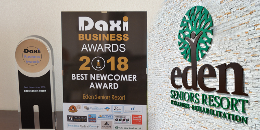 Στο τομέα νεοεισερχομένων επιχειρήσεων το EDEN RESORT REHABILITATION WELLNESS ASSISTED LIVING πήρε το πρώτο βραβείο ανάμεσα από έντεκα προεπιλεγμένες υποψηφιότητες.