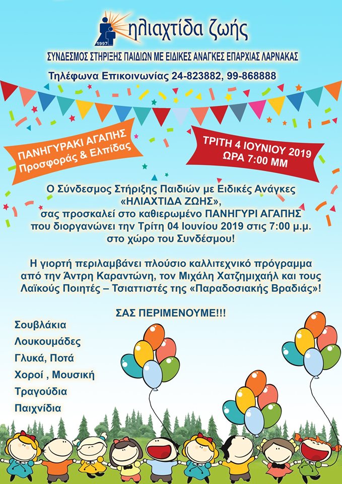 Reading: Έρχεται το Πανηγύρι Αγάπης του Συνδέσμου Στήριξης Παιδιών με Ειδικές Ανάγκες “Ηλιαχτίδα Ζωής” στη Λάρνακα