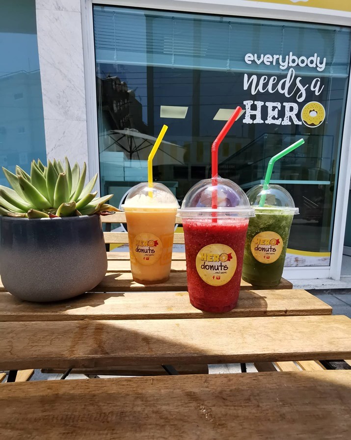 Εάν δεν είσαι στο mood για κάτι γλυκό Donut worry! Στα Hero Donuts & more θα βρούμε smoothies από πραγματικά φρούτα με καθόλου επιπρόσθετη ζάχαρη, που θα ρίξουν τη θερμοκρασία με την πρώτη επαφή. Η ομάδα του Hero Donuts έχει επιλέξει 3 υπέροχους συνδιασμούς από διάφορα τροπικά φρούτα όπως μάνγκο λεμονγκρας μπανάνα και καλέ, μήλο ράσμπερυ μανκο και μπλουβερρυ όπως και pineapples papaya mango! Βέβαια υπαρχή και η επιλογή του milkshake ή της παγωμένης σοκολάτας.