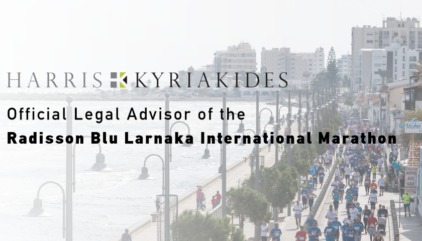 Η δικηγορική εταιρεία Χάρης Κυριακίδης ΔΕΠΕ έχει αναλάβει τη νομική υποστήριξη της μεγαλύτερης αθλητικής διοργάνωσης της Λάρνακας και θα ενεργεί κατά την επόμενη τριετία ως ο νομικός σύμβουλος του Radisson Blu Διεθνούς Μαραθωνίου Λάρνακας.