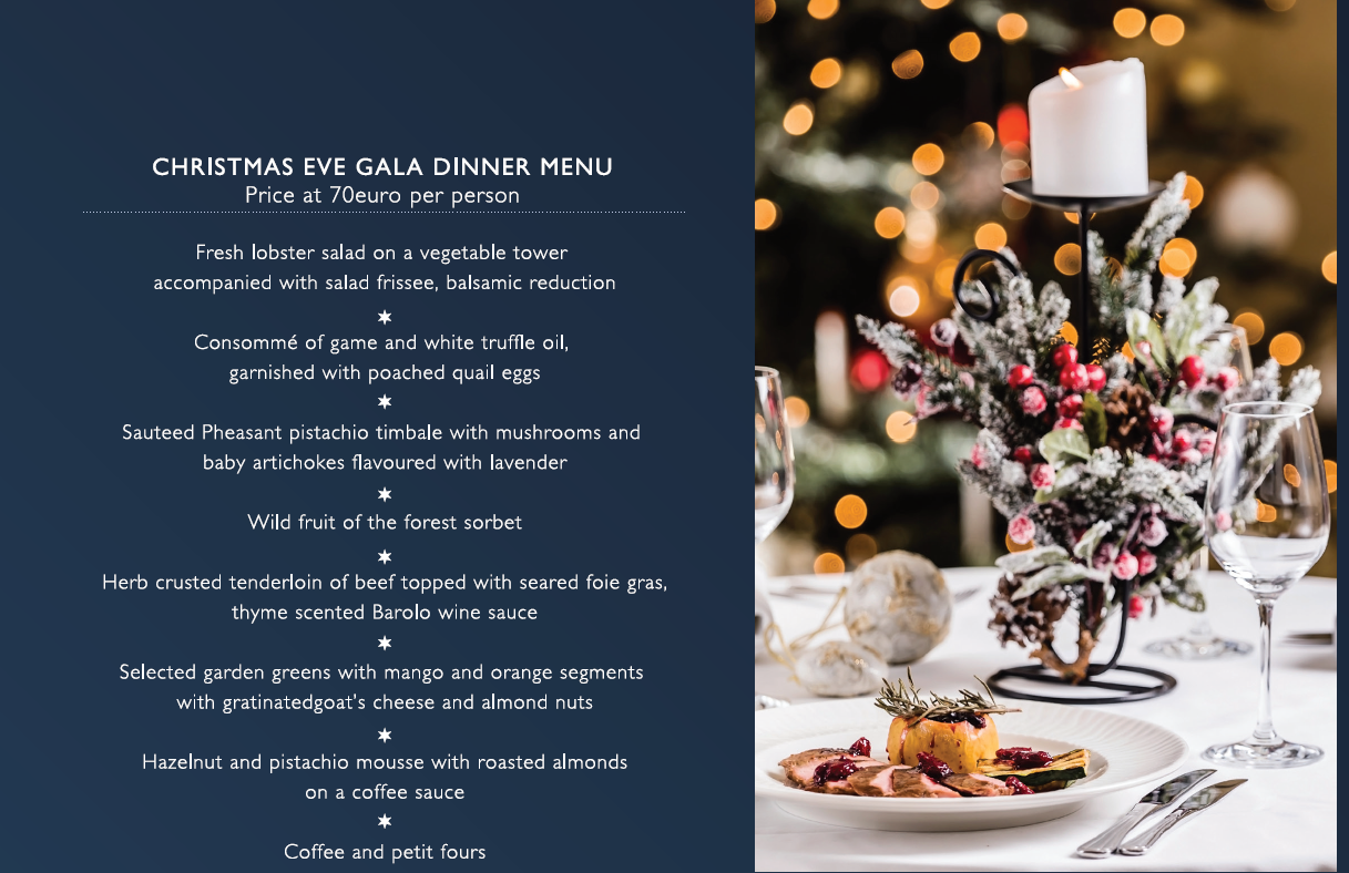 Η εμφάνιση των Παπιγιόν ακυρώθηκε για τις 24 Δεκεμβρίου αλλά και πάλι το Radisson Blu Hotel προσφέρει ένα άκρως εορταστικό πρόγραμμα.