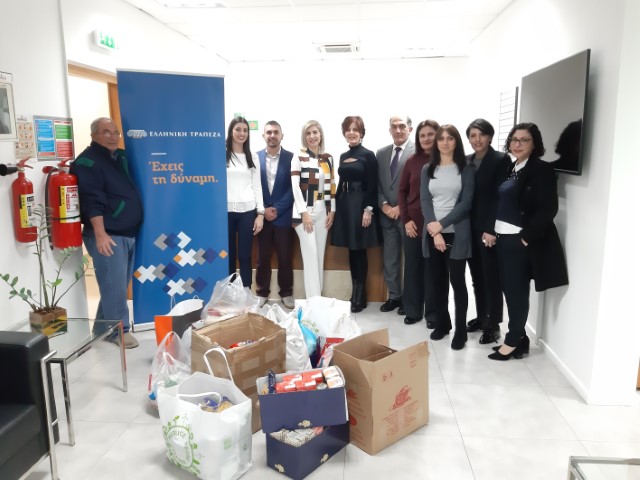 Τα τρόφιμα προσφέρθηκαν από τους υπαλλήλους της Ελληνικής Τράπεζας Λάρνακας – Αμμοχώστου και εκ μέρους της Ελληνικής Τράπεζας παρέδωσε η κα ‘Εμιλυ Παστελίδου, Διευθύντρια Δικτύου Καταστημάτων,  Επαρχίας Λάρνακας – Αμμοχώστου.