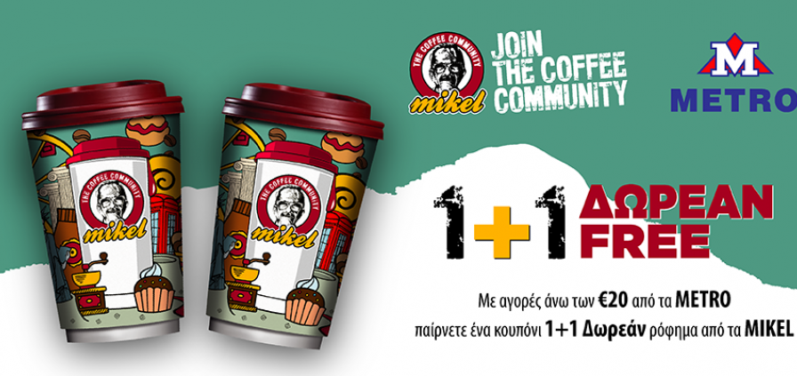 Με αγορές €20 και άνω στα METRO παίρνετε  κουπόνι για 1+1 δώρο ρόφημα στα MIKEL!  Καλή απόλαυση!