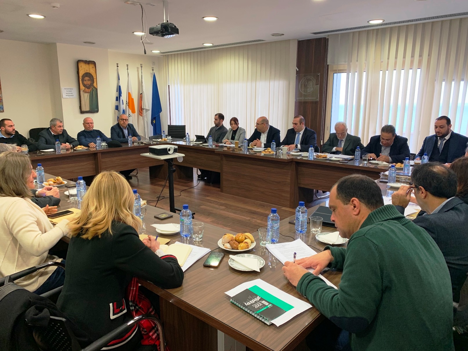 Πραγματοποιήθηκε σήμερα Πέμπτη, 13 Φεβρουάριου 2020, στα Γραφεία του Δήμου Λάρνακας, επίσκεψη του Υπουργού Μεταφορών, Επικοινωνιών και Έργων κ. Γιάννη Καρούσου για συζήτηση θεμάτων που αφορούν την πόλη και επαρχία Λάρνακας. Κατά την επίσκεψη είχε συνάντηση με τον Δήμαρχό Λάρνακας κ. Ανδρέα Βύρα και ακολούθως διαδοχικές συναντήσεις με όλους τους Δημάρχους της Επαρχίας Λάρνακας.