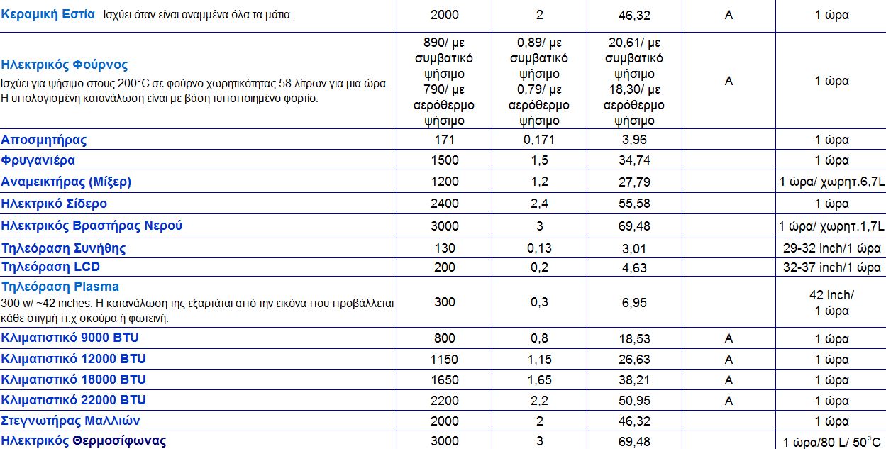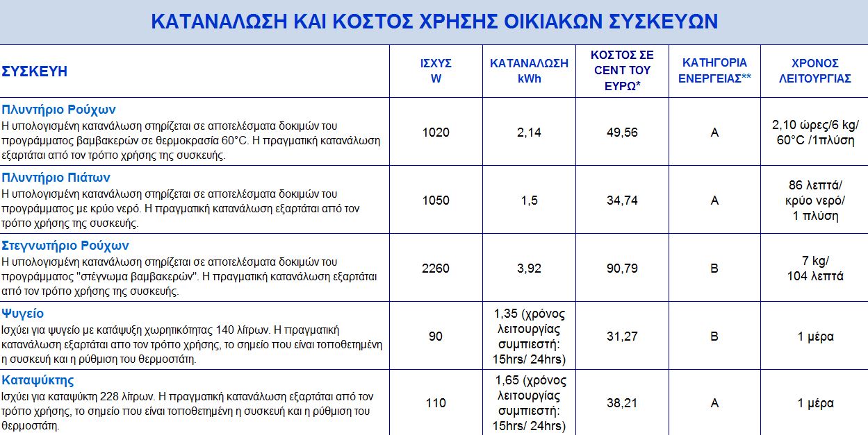 Η Αρχή Ηλεκτρισμού δίνει την δυνατότητα στους καταναλωτές να αποκτήσουν μια καλύτερη αντίληψη σχετικά με τις πιο δαπανηρές οικιακές δραστηριότητες, έχοντας αναρτήσει έναν πίνακα με τις πιο ενεργοβόρες, άρα και πιο κοστοβόρες συσκευές.