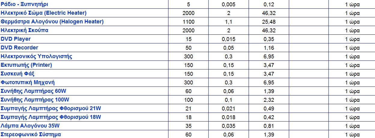 Το υπολογιζόμενο κόστος χρήσης των πιο πάνω συσκευών έχει υπολογιστεί με βάση τη μέση τιμή της κιλοβατώρας (23,16 cent/kWh) των οικιακών πελατών για τους μήνες Νοέμβριο και Δεκέμβριο 2019, συμπεριλαμβανομένου του ΦΠΑ (19%) και της χρέωσης για Ανανεώσιμες Πηγές Ενέργειας (1 cent/kWh) καθώς επίσης και της χρέωσης για Υ.Δ.Ω. (0,071 cent/kWh). Η τιμή της kWh αυξομειώνεται κάθε μήνα ανάλογα με την τιμή του καυσίμου όπως καθορίζεται στις εγκεκριμένες από την ΡΑΕΚ διατιμήσεις.