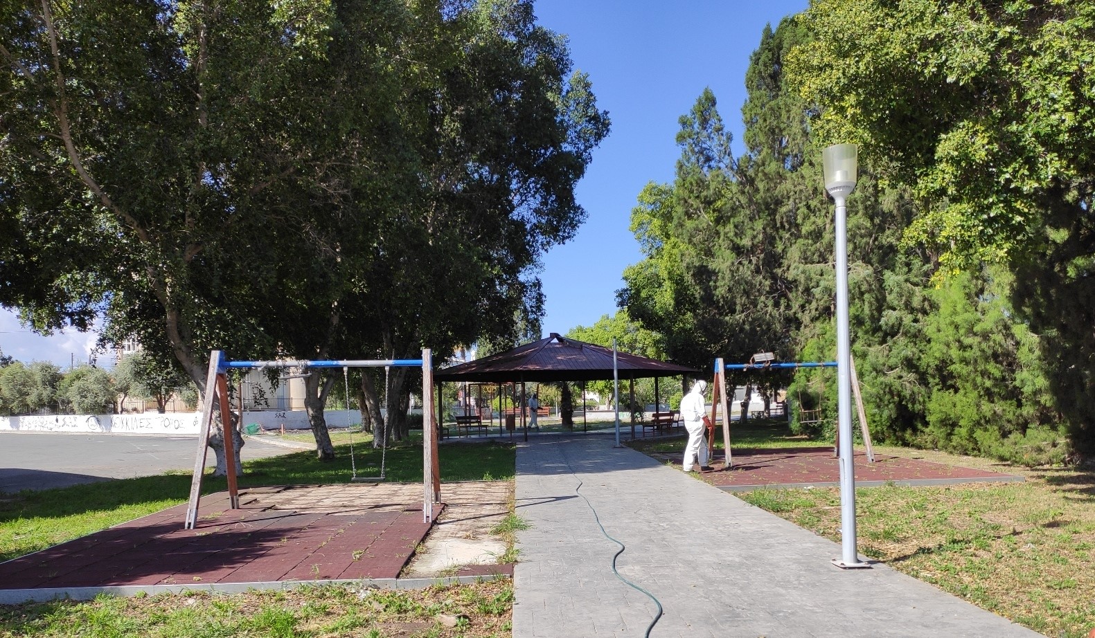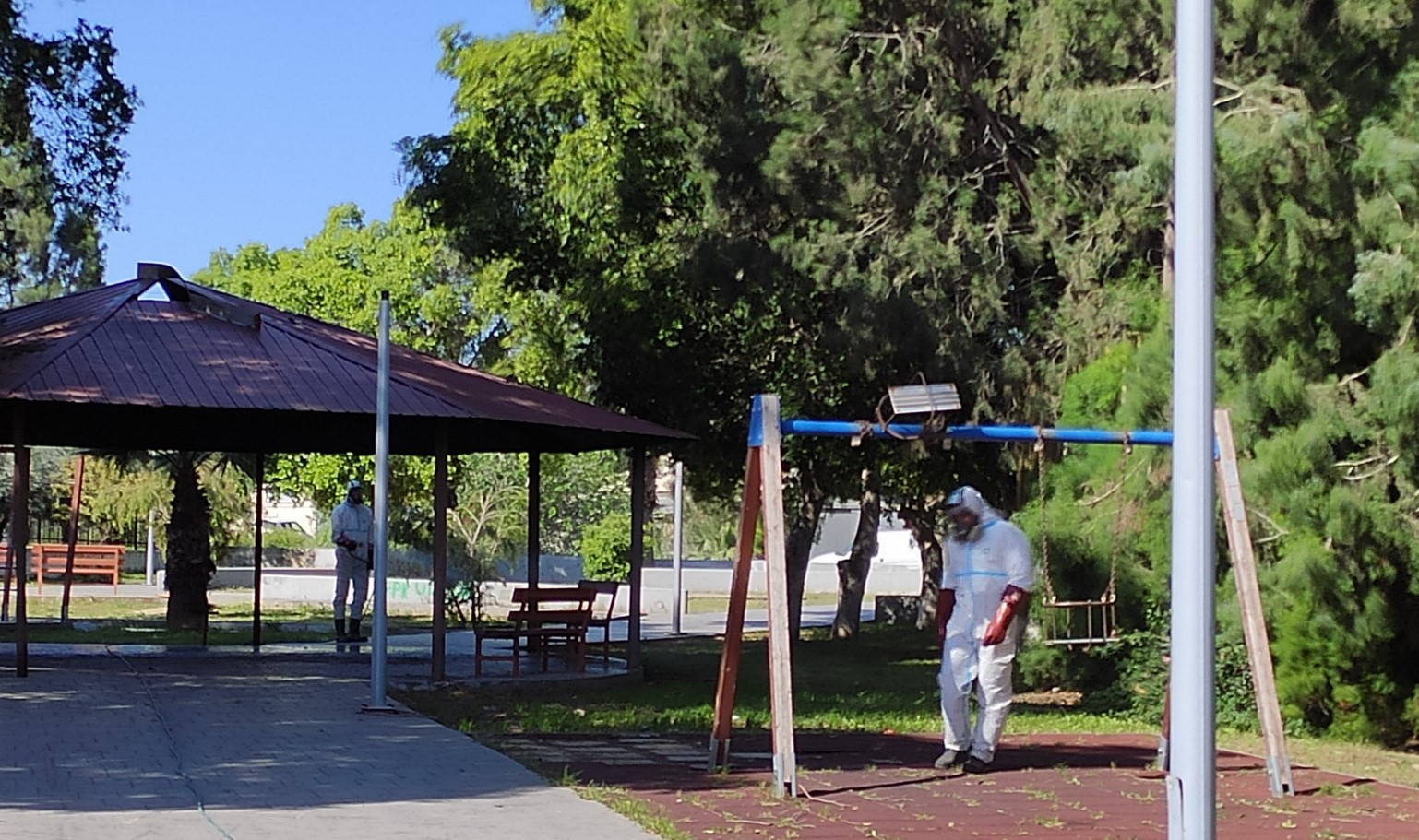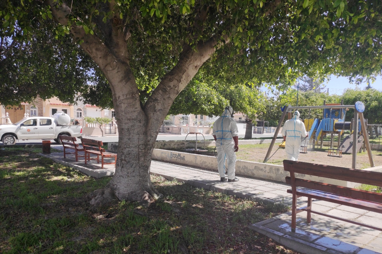 Οι απολυμάνσεις επαναλαμβάνονται και συνεχίζονται καθημερινά τόσο σε πλατείες, δημοτικά αποχωρητήρια όσο και σε δημόσιους χώρους.