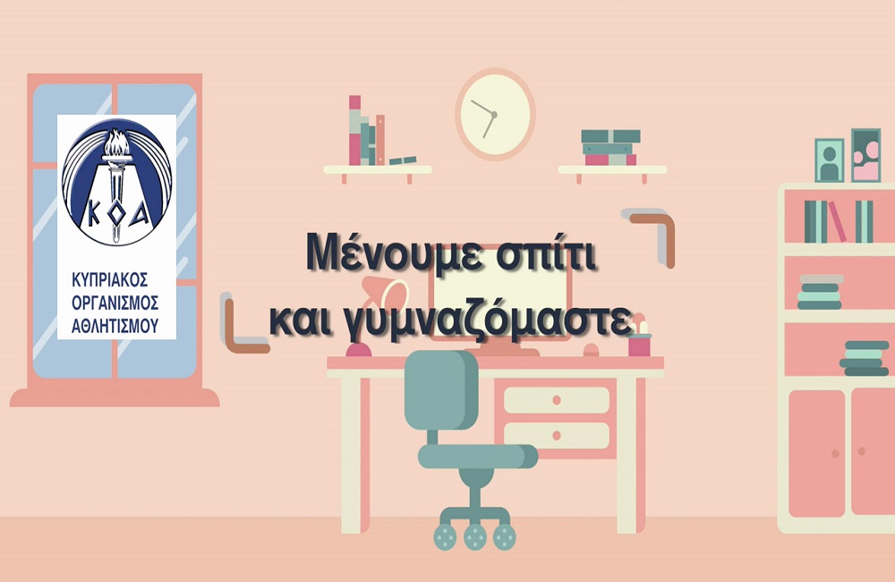 Ο Κυπριακός Οργανισμός Αθλητισμού προχώρησε στη δημιουργία πέντε βίντεο με σλόγκαν: «ΜΕΝΟΥΜΕ ΣΠΙΤΙ ΚΑΙ ΓΥΜΝΑΖΟΜΑΣΤΕ» σπρώχνοντας έτσι τους συμπολίτες μας στην άθληση, ενώ βρίσκονται στο σπίτι ακολουθώντας τα μέτρα της Κυβέρνησης. Τα φιλμάκια απευθύνονται σε ξεχωριστές ηλικίες και οι ασκήσεις γίνονται από τους γυμναστές του ΚΟΑ, «Αθλητισμός Για Όλους».