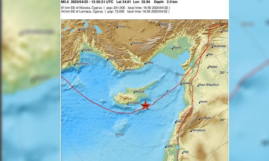 Σεισμική δόνηση σημειώθηκε σήμερα Τετάρτη (22/04) στη Λάρνακα.
