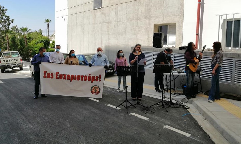 Η εκδήλωση στο Νοσοκομείο Λάρνακας πραγματοποιήθηκε σήμερα, Τρίτη 12 Μαΐου 2020 και περιλάμβανε ένα ημίωρο μουσικό πρόγραμμα όπου τον χαιρετισμό απηύθυνε η Ε.Γ. του ΑΚΕΛ Λάρνακας Χρυστάλλα Αντωνίου.