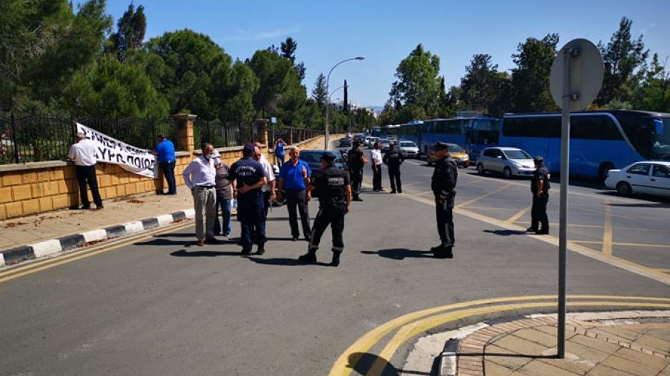 Στάθμευσαν τα λεωφορεία τους έξω από το Προεδρικο οι οδηγοί της “Ζήνων” (ΦΩΤΟ)