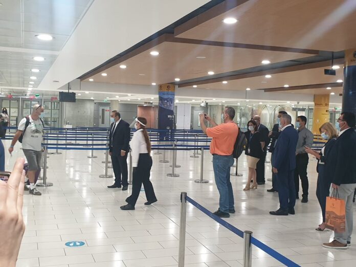 Στο Αεροδρόμιο Λάρνακας βρέθηκε σήμερα ο Υπουργός Μεταφορών Γιάννης Καρούσος, ο οποιος υποδέχθηκε την πρώτη πτήση στην Κύπρο, μετα το άνοιγμα των αεροδρομίων.