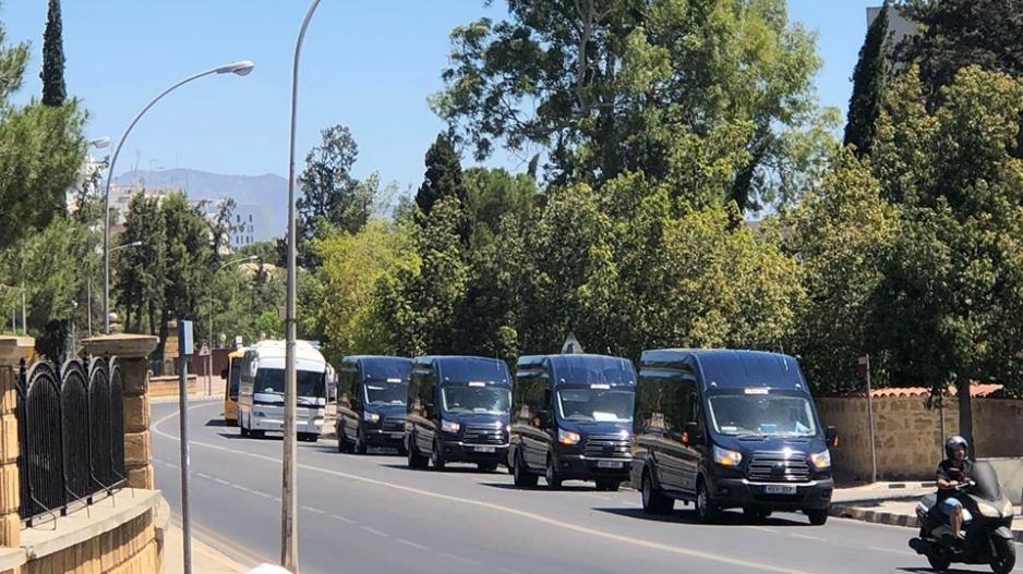 Τριάντα λεωφορεία με τους οδηγούς τους, βρέθηκαν έξω από το Συνεδριακό, όπου συνεδριάζει σήμερα η Βουλή, και ακολούθως μετέβησαν στο Προεδρικό Μέγαρο και κρατώντας πανό που έγραφαν “Όχι στο ξεπούλημα των Κυπρίων λεωφορίουχων” διαμαρτυρήθηκαν ειρηνικά για τη διεκδίκηση των δικαιωμάτων τους.