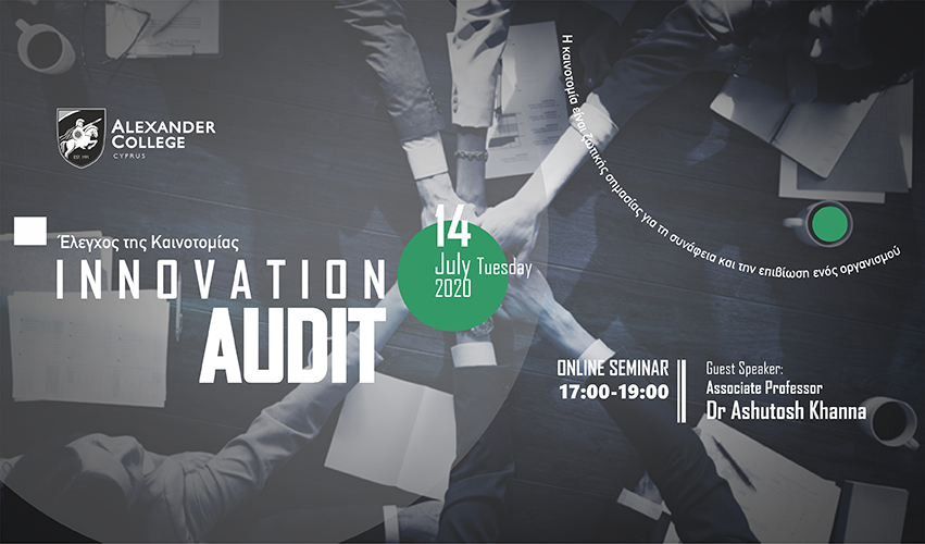 Το ακαδημαϊκό ίδρυμα Alexander και το Alexander Research Center, προσφέρουν μια μοναδική ευκαιρία σε στελέχη Μεσαίων και Μεγάλων ιδιωτικών οργανισμών, επικεφαλής τμημάτων περιλαμβανομένων κυβερνητικών τμημάτων, ερευνητών, συμβούλων επιχειρήσεων, καθώς και μικρών επιχειρήσεων με φιλοδοξία και όραμα, να συμμετέχουν σε μια διαδικτυακή συζήτηση/διάλεξη, με ομιλητή τον Επίκουρο Καθηγητή Δρ Ashutosh Khanna με θέμα “Έλεγχος της Καινοτομίας – Η καινοτομία είναι ζωτικής σημασίας για τη συνάφεια και την επιβίωση ενός οργανισμού”.
