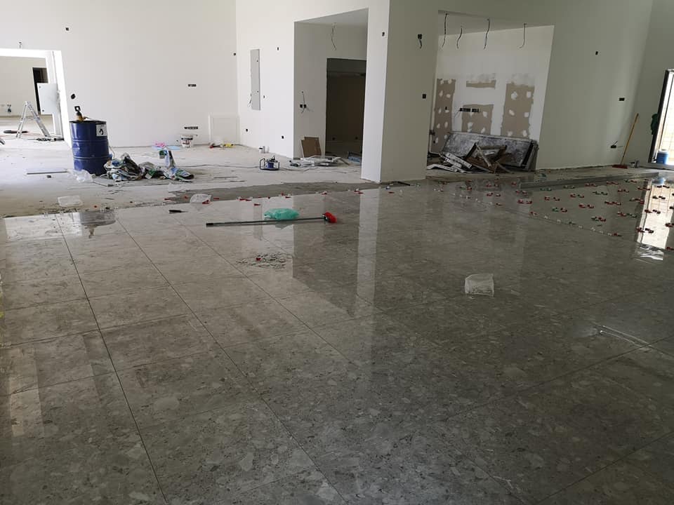 Απομένουν οι εργασίες τοποθέτησης γρανιτων αυλής, στεγαστρα, είδη υγιεινής, φωτοβολταϊκό σύστημα, έπιπλα και ηλεκτρικές συσκευές.
