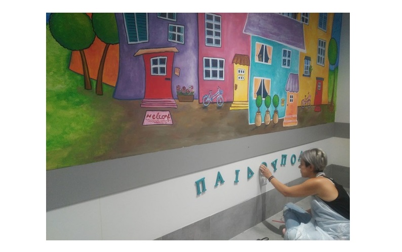 Οι δύο ζωγράφοι εκπαιδευτικοί Ρένα Νικολάου και Νάσια Παναγή, μαζί με μαθητές και φοιτητές ζωγραφικής έδωσαν χρώμα στη νέα πτέρυγα του Νέου Νοσοκομείου Λάρνακας, στο παιδιατρικό τμήμα.