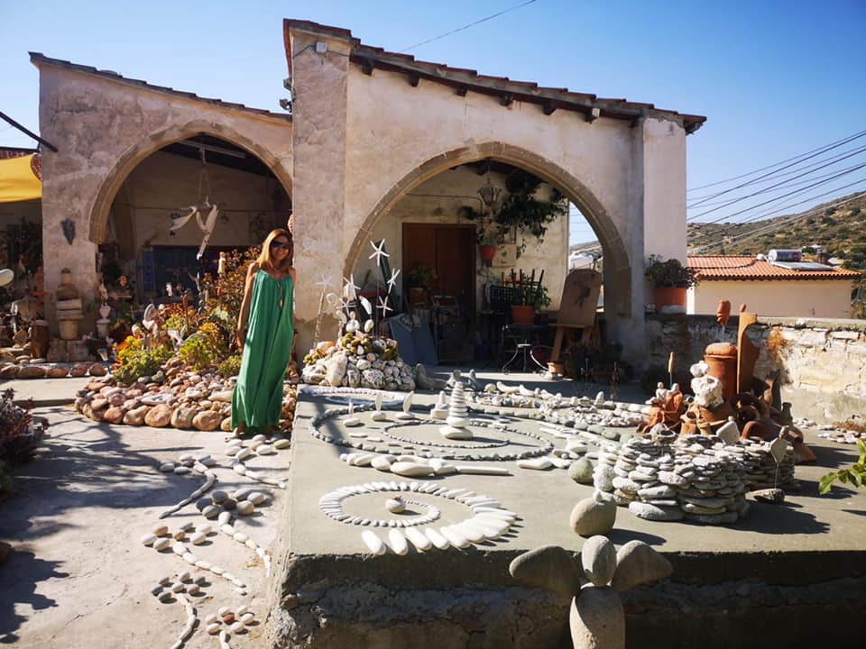 Η Καλαβασός έχει πανέμορφα σπίτια, γραφικά, το ένα δίπλα στο άλλο αλλά ένα ξεχώριζε και μου προκάλεσε την περιέργεια! Στην είσοδο του υπήρχαν διάφορα δημιουργήματα από πέτρες. Μπήκα μέσα αλλά δεν ήταν κανείς. Στην πινακίδα είδα ότι είναι του Μιχάλη Μόζορα. Έχω ακούσει γι αυτόν αρκετές φορές γιατί ένας ιδιαίτερος καλλιτέχνης που δημιουργεί γλυπτά με πέτρες της θάλασσας. Στην αυλή του ανακαλύπτεις συνεχώς μορφές σκαλισμένες ή και αφηρημένες έννοιες που σου ξυπνούν την φαντασία να τις ερμηνεύσεις.