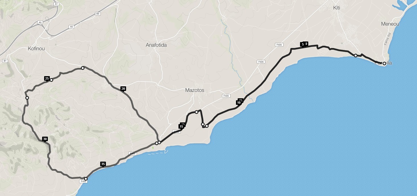 Η διαδρομή συνεχίζει σε άλλα χωριά της Επαρχίας Λάρνακας μέχρι να τερματίσει στο σημείο που ξεκίνησε.
